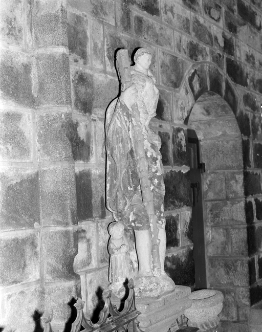 Groupe sculpté (petite nature) : saint Christophe, le Passage du gué, église paroissiale Saint-Ronan (Locronan),