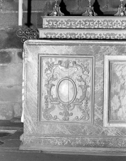 Autel, tabernacle, exposition, gradins d'autel (2) (maître-autel, tabernacle à ailes), église paroissiale Saint-Ronan (Locronan),