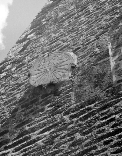 Logis 1, pignon sud, cadran solaire (état en 1974)Immatriculation