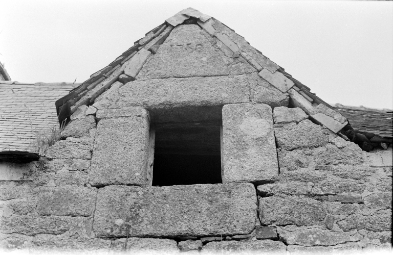 Alignement 3. Détail de la lucarne datée 1758. Etat en 1974. Section E3 parcelles 1165, 777Immatriculation