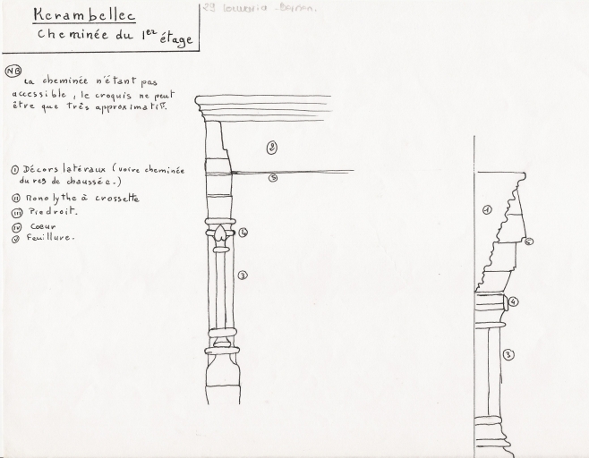 Croquis de la cheminée de l'étage en 1974Immatriculation