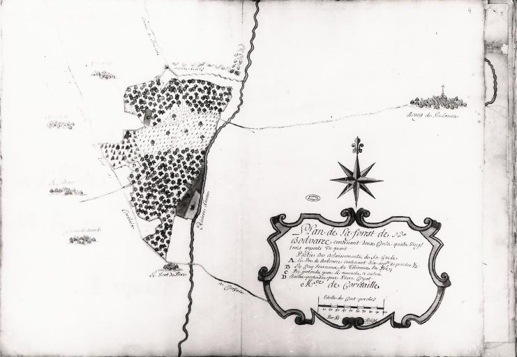 Plan de la forêt de Botvarec (dit plan Robert), vers 1730 (Archives Nationnales N 4 Finistère 1)Immatriculation
