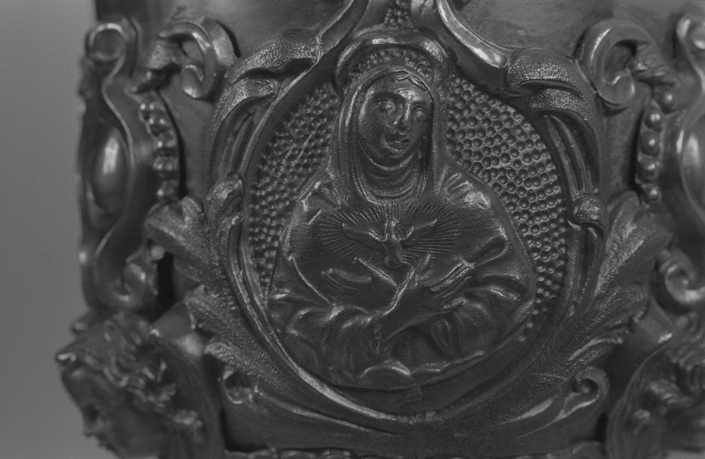 Calice n°3, détail de la coupe, la Vierge.Immatriculation