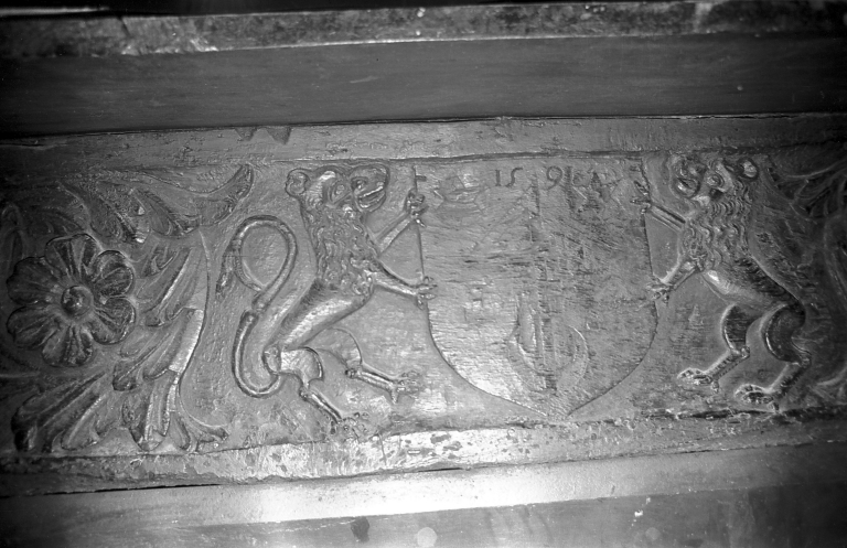 Guenoux ; cheminée, détail : marque de marchand datée 1591Immatriculation
