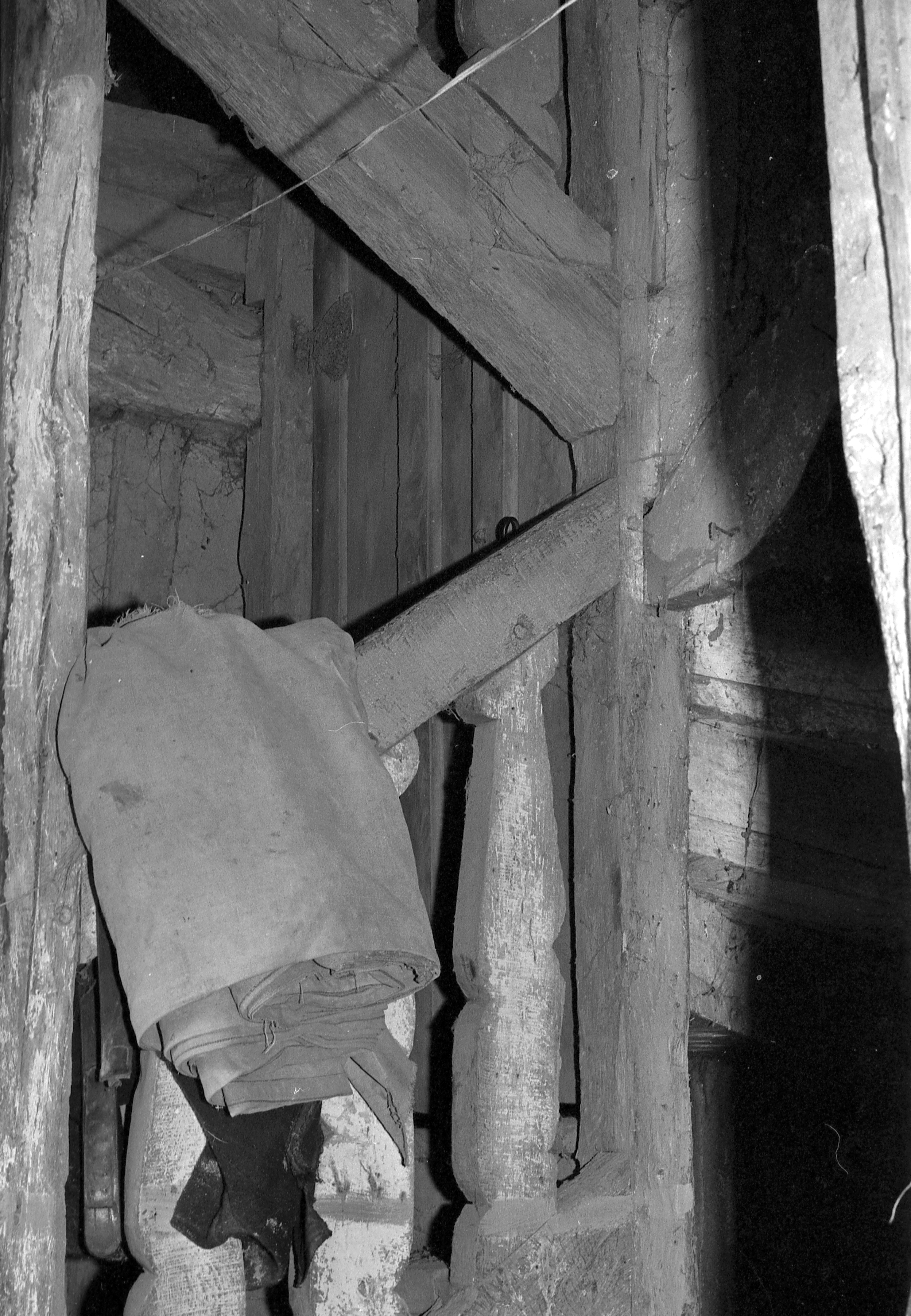 Rampe d'esalier et porte d'accès au grenier en 1974Immatriculation