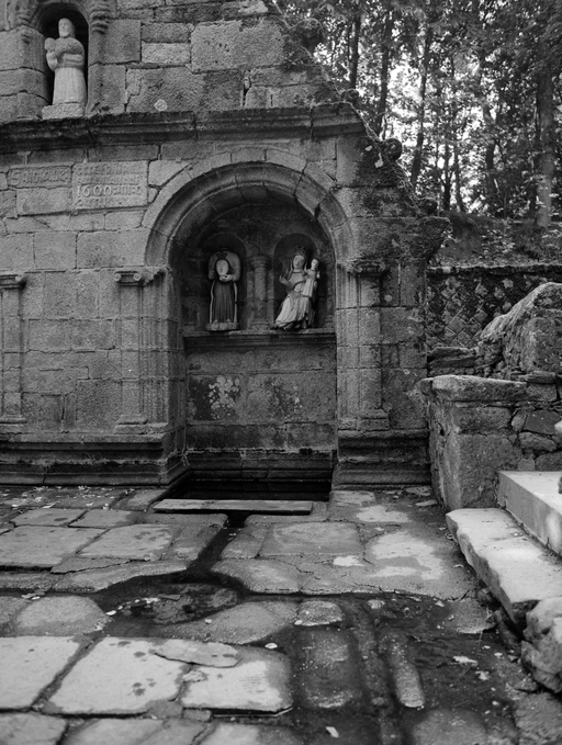 Fontaine principale, arcade de droite, statues de sainte Noyale et de la Vierge à l'EnfantImmatriculation
