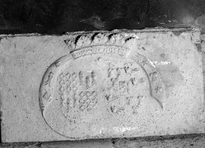 Tour sud-ouest, deuxième niveau, plaque de cheminée.Immatriculation