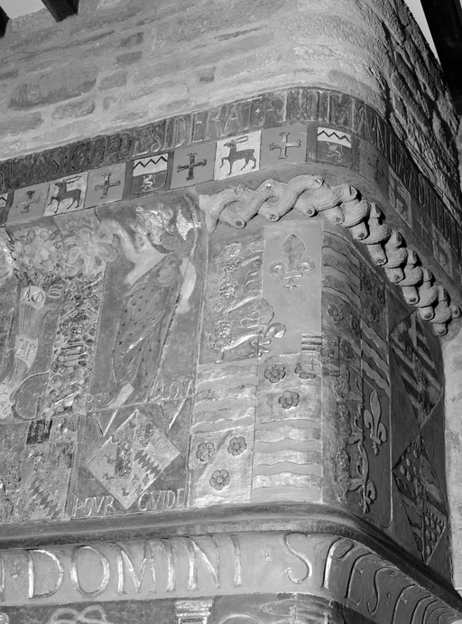 Tour sud-ouest, deuxième niveau - Cheminée, partie droite de la hotte, détail de Bellonne.Immatriculation