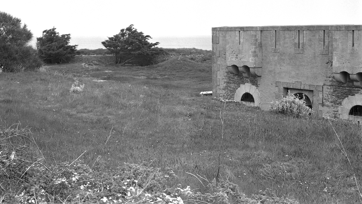 Sauzon, batterie du Cardinal, corps de garde crénelé, état dans les années 1970.Immatriculation
