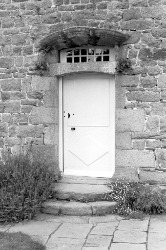 Vue détaillée, corps de logis, façade antérieure, porte d'entrée (cliché Sylvaine Laffiché, pré-inventaire, 1975)Immatriculation