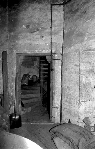 Vue intérieure, 1er étage, 'chambre de parement' : porte d'accès à la tour ; état en 1975Immatriculation