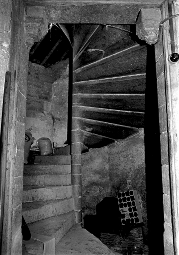 Vue intérieure, 1er étage, 'chambre de parement' : porte d'accès à la tour ; état en 1975Immatriculation