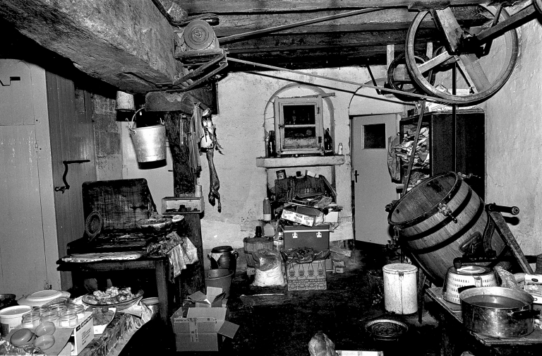 Vue intérieure, rez-de-chaussée : cellier, mur est ; état en 1975Immatriculation