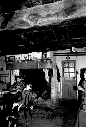 Vue intérieure, rez-de-chaussée : mur nord, cheminée ; état en 1975Immatriculation