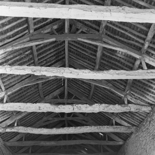 Vue ancienne : charpente de l'étable (1973)Immatriculation