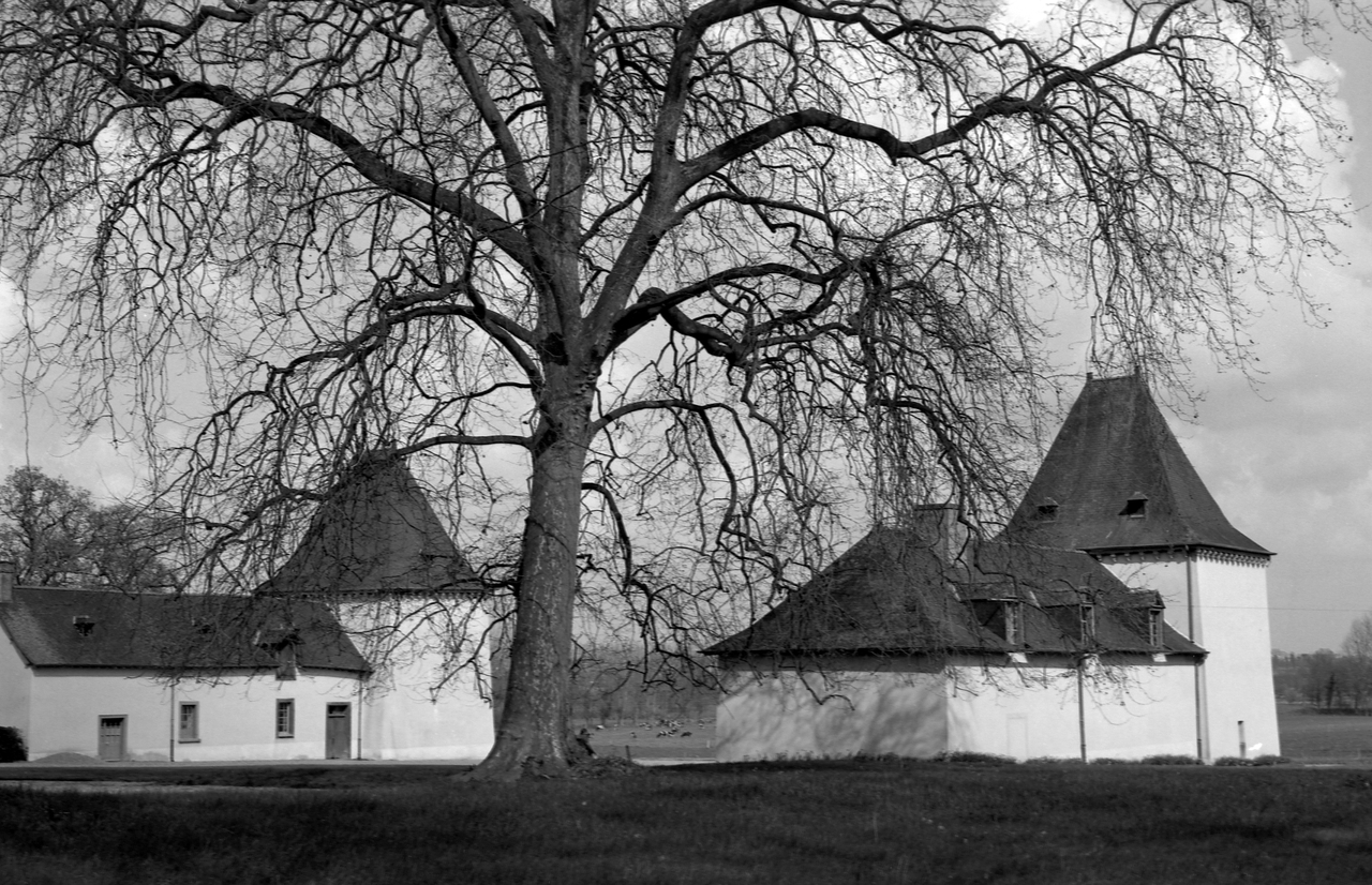 Château de la Freslonnière - corps de garde et chêne, pris du sud ouestImmatriculation