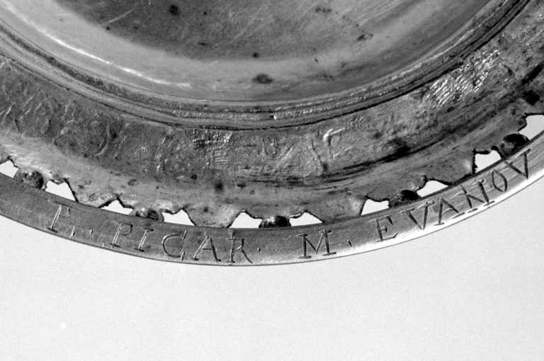 Détail de l'inscription sous le pied, état en 1975Immatriculation