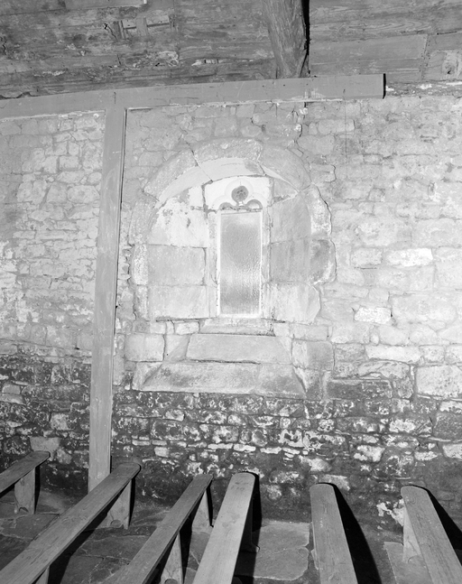 Vue intérieure du mur nord de la nef : détail de la baieImmatriculation