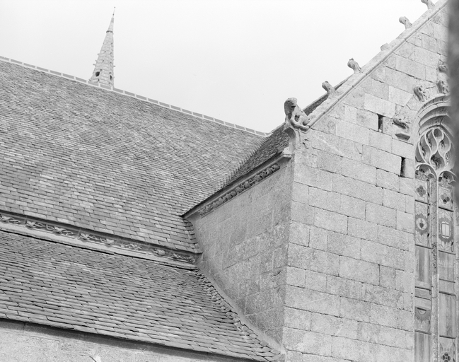 Choeur : détail de la crossette à la base du rampant sud et corniche sur le mur sudImmatriculation
