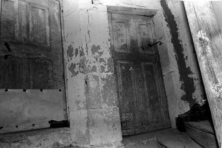 Etat en 1976, partie centrale, escalier en vis, la première porte accède à la chambre, la deuxième au comble du logisImmatriculation