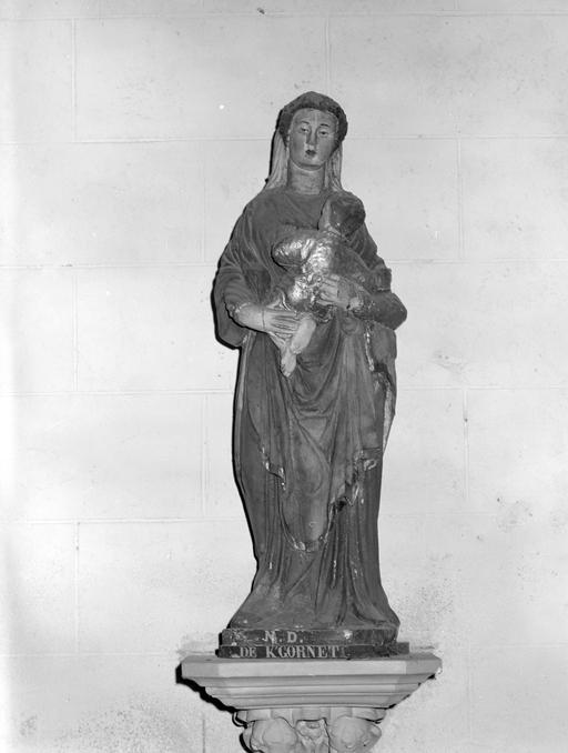 Statue (d'applique, petite nature) : Vierge à l'Enfant dite Notre-Dame de Kergornet, église paroissiale Saint-Caradec (Saint-Caradec-Trégomel),