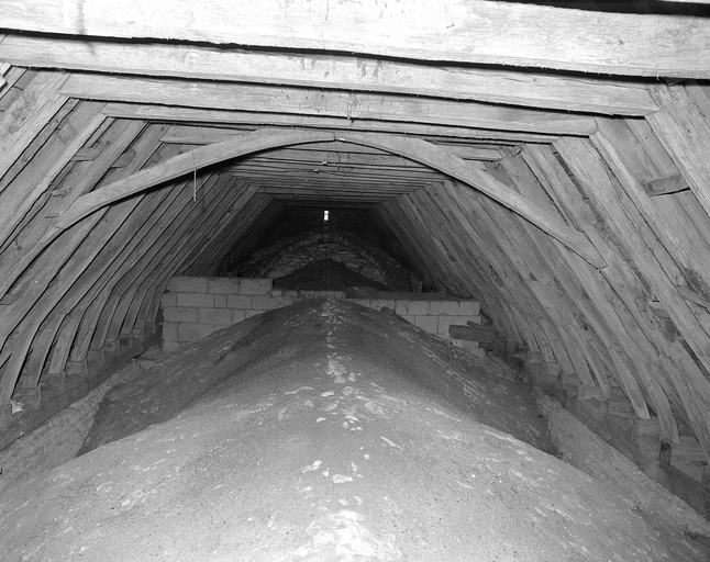 Vue générale de l'extrados des voûtes et de la charpente.Immatriculation