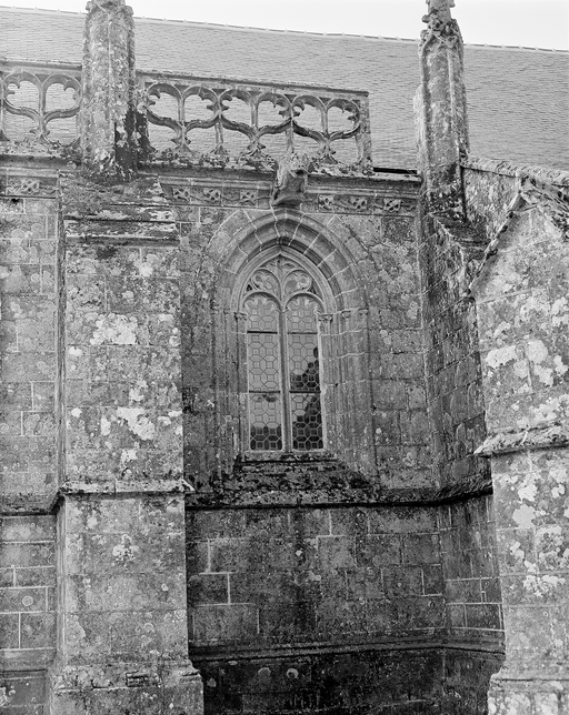 Façade nord, détail de la fenêtre du choeur, deuxième travée.Immatriculation