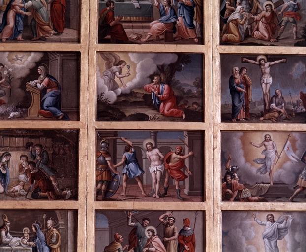 Tableau : vie du Christ et de la Vierge, église paroissiale Saint-Barnabé (Langoëlan),