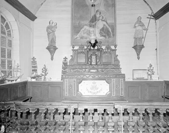 Autel, tabernacle, gradins d'autel (2) (autel à parements, tabernacle à ailes), chapelle Notre-Dame-de-Coz-Iliz (Pleudaniel),