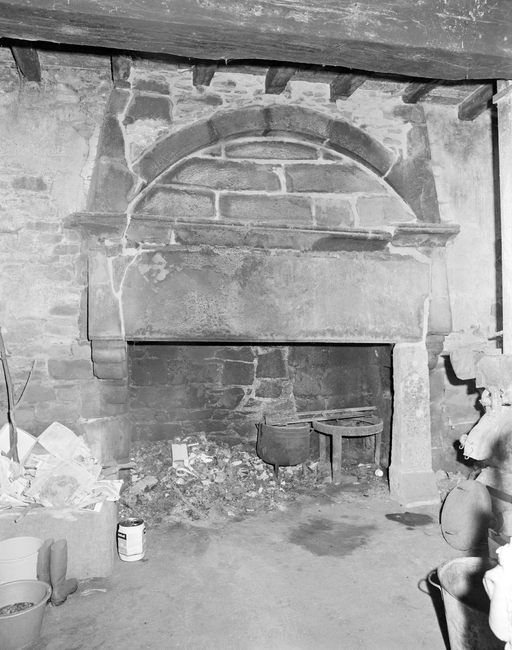 Ouest du logis, rez-de-chaussée, vue générale d'une cheminée. Etat en 1977.Immatriculation