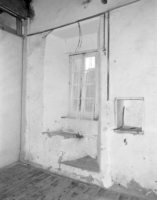 Etage du logis, mur sud du palier, fenêtre à coussiège. Etat en 1977.Immatriculation