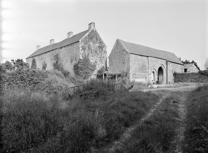 Vue de la façade nord du logis et du porche depuis le nord-ouest. Etat en 1977.Immatriculation