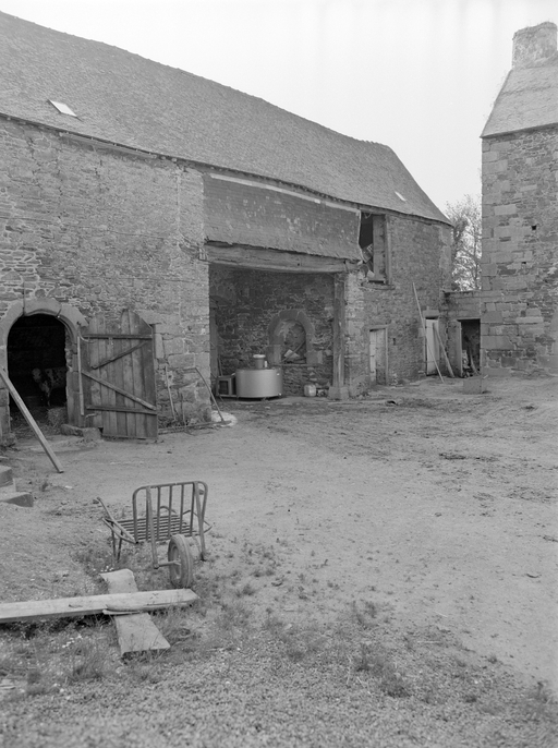 Face est du porche à portes charetière et piétonne. Etat en 1977.Immatriculation