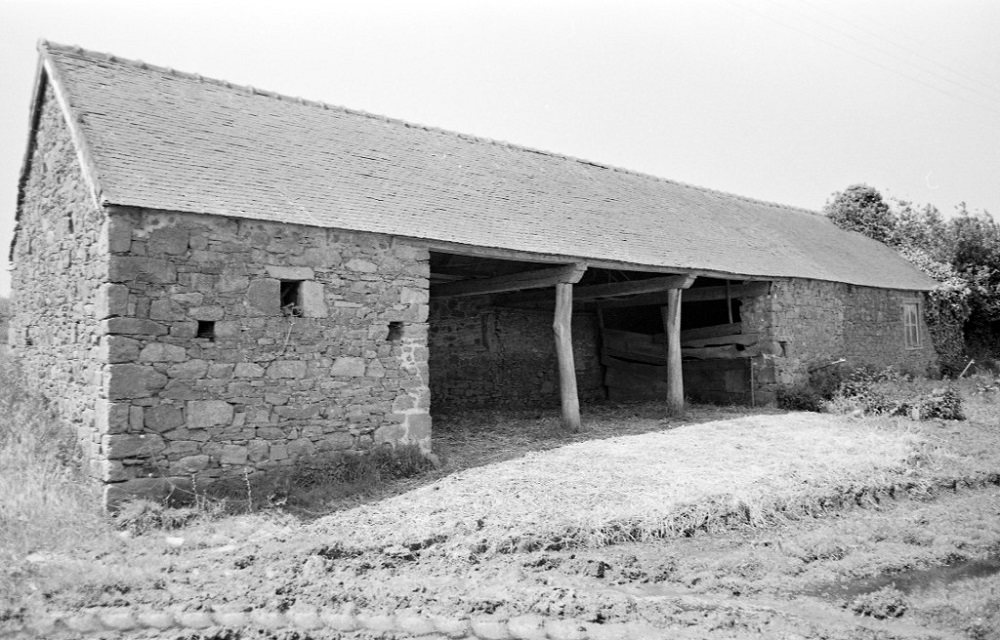 Elévation est de la grange sur piliers bois. Etat en 1977.Immatriculation
