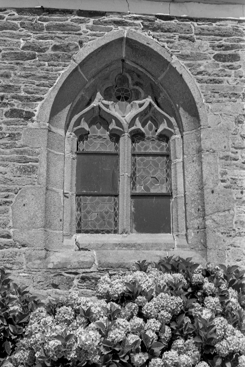 Détail de la baie représentant l'Annonciation sur l'élévation sud près du chevet (état en 1977)Immatriculation