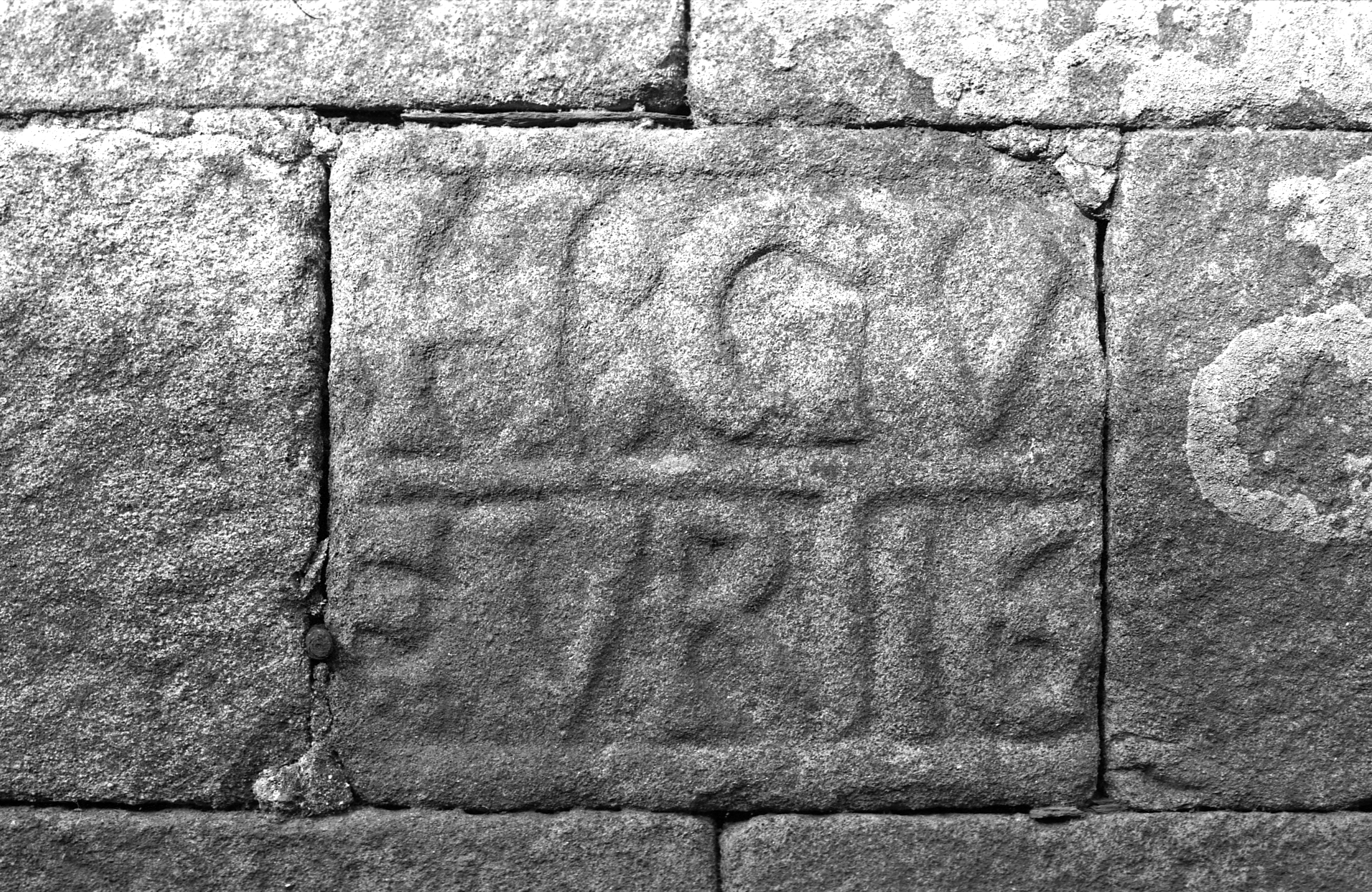 Base du chevet, détail de l'une des inscriptions. (1977)Immatriculation