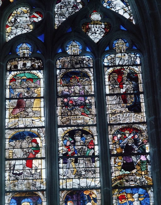 Verrière (coffre bombé, anciennement coffre numéro 1) : vie du Christ, église paroissiale Saint-Ronan (Locronan),