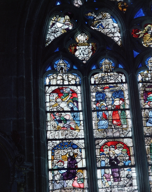 Verrière (coffre bombé, anciennement coffre numéro 1) : vie du Christ, église paroissiale Saint-Ronan (Locronan),
