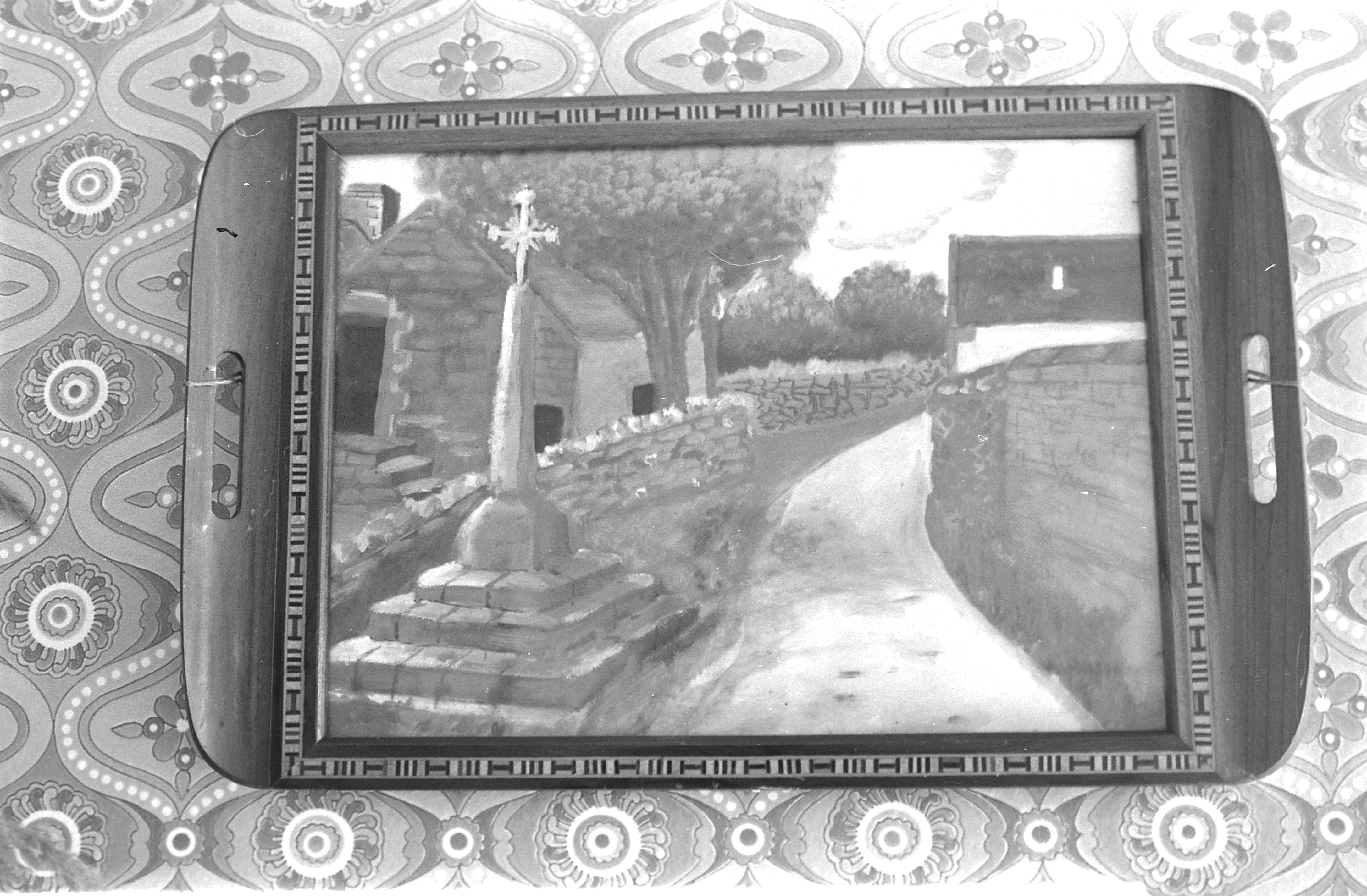 Kervergar, bableau représentant la croix avant son déplacement.Immatriculation
