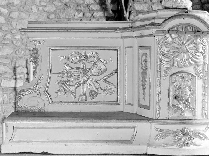 Ensemble du maître-autel : autel, tabernacle, gradin d'autel, degré d'autel (Chauvigné),