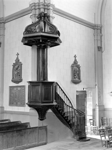 Ensemble de mobilier : maître-autel et son retable, autel-retable de la Vierge, autel-retable de saint Joseph, 3 stalles, chaire à prêcher, confessionnal (Noyal-sous-Bazouges),