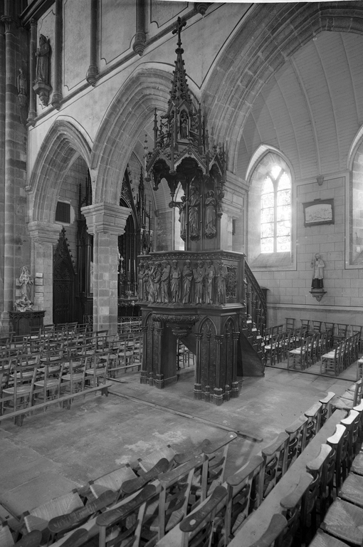 Ensemble de mobilier néo-gothique : 3 autels, stalles, lambris de hauteur, clôture, chaire à prêcher, 2 confessionnaux, chemin de croix (Bazouges-la-Pérouse),