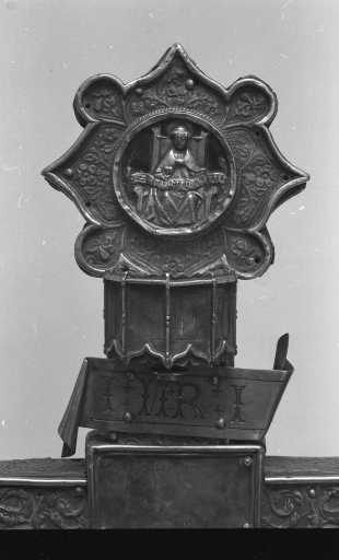 Face antérieure, fleuron supérieur : saint AugustinImmatriculation