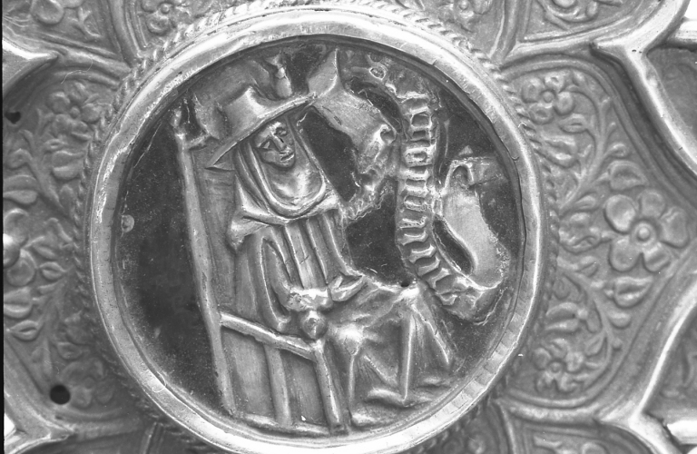 Face antérieure, fleuron gauche : saint JérômeImmatriculation