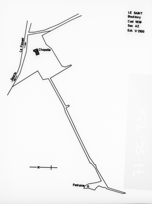 Ancienne Chapelle Saint-Adrien, actuellement monument commémoratif, et sa croix, Boutihiry (Le Saint),
