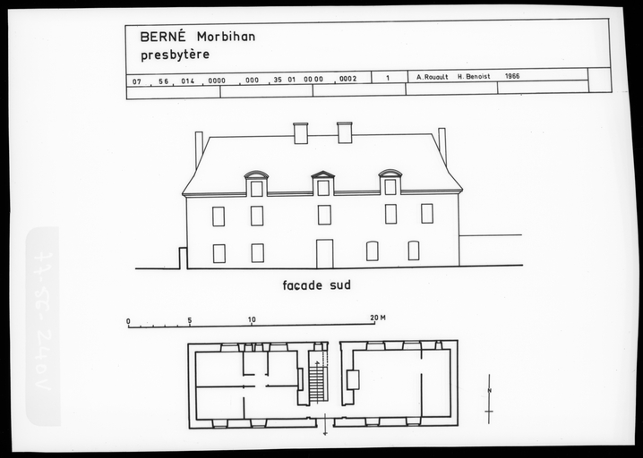 Façade sud et plan au sol, 1966.Immatriculation