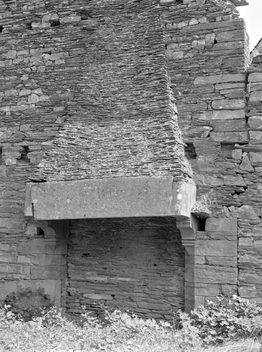 Monténeuf, Bécinan, cheminée d'une maison ruinée en schiste et grès (XVIIe s. ?)Immatriculation