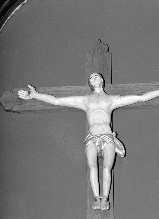 GUER, église paroissiale Saint-Gurval, statuette du Christ en croix.Immatriculation