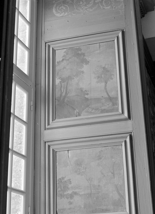 Panneaux peints logis, chambre 1er étage, embrasure droite fenêtre.Immatriculation