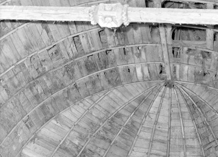 La chapelle (c), charpente au-dessus du choeur.Immatriculation
